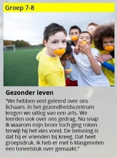 - Van lichamelijke tot geestelijke en sociale gezondheid: kinderen leren over infectieziektes, leefstijlziektes en zonder stress omgaan met elkaar.